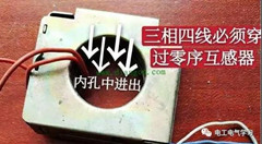 ●零序剩余電流互感器是剩余電流動作保護裝置中的一個檢測元件。只有三根相線穿過剩余電流互感器,它會有漏電電流存在,但此時剩余電流互感器已經失去它的最基本功能了,這時候的剩余電流動作保護器可能為合不上閘或者拒絕動作情況;即便是三三根火線沒有輸出,零線仍然接至線路中,零線它仍然可以檢測出剩余漏電電流,此時它會反饋給電子線路,執行動作喲。見下來圖所示。