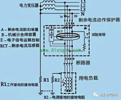 當保護器的輸出線路有剩余電流或其它接地漏電故障時,由于剩余電流的存在,迫使這個剩余電流通過RCT一次側檢測的三相負荷電流,其中包括工作零線N的電流的矢量和不再為0,打破了平衡,此時,基爾霍夫方程兩邊為不等于≠即ΣI=IL1+lL2+IL3+ILN≠0,從而剩余電流互感器RCT的磁通量公式也被打破平衡≠。即φL1+φL2+φL3+φLN≠0 此時RCT將檢測出的信號送入E→電子信號放大運算器中,由剩余電流脫扣器來執行命令,進行分閘保護。